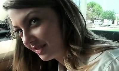 Bitchy teen Calibri Angel gives a blowjob in the car and gets pounded indoor