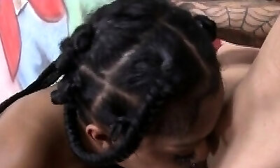 Ebony Ghetto Trash Gagging On White Dudes Dick In Threesome