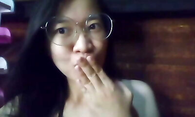 Innocent looking asian teen fingering her smoothly-shaven nookie