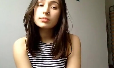 Amateur brunette babe with natural boobs