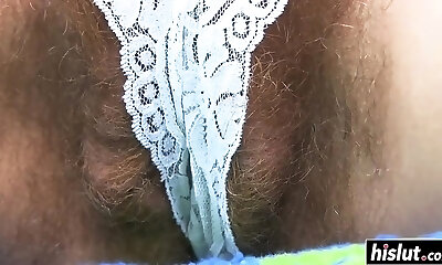 young hairy pussy, hairy donk, hairy pits gets off outdoors