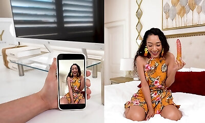 Petite Latina brunette stretched deep in gonzo one-on-one session