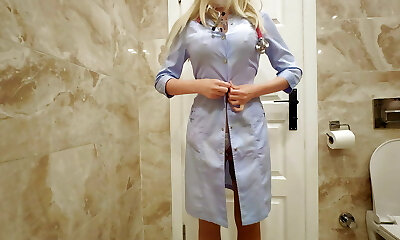 nurse in the hospital wc masturbates and makes a video on the smartphone for her subscribers
