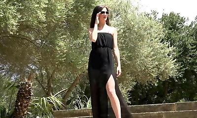 Nicky Brill no panties and observe through dress in public and peeing