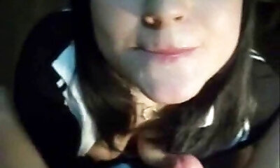 розовощекая школьница с поразительным оральным удовольствием принимает мужскую похлебку на лицо