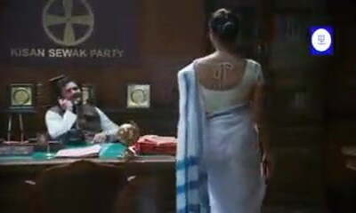 симпатичная и молоденькая темноволосая офисная нимфа избила жестко огромными валами на работе