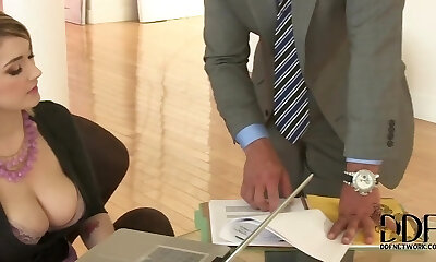 аликс стар с большими натуральными сиськами трахается в офисе