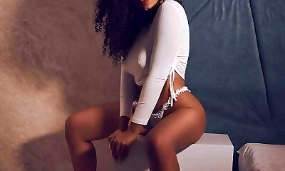 Super-naughty ebony slut with an awesome oiled bubble butt gets the ultimate delight being penetrated by a sex machine
