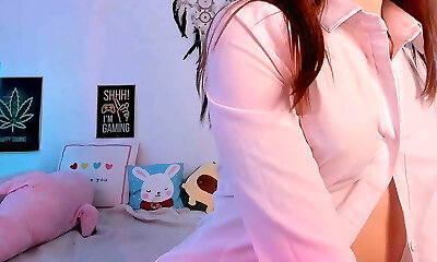 HOT Nymph IN TRANSPARENT WHITE SHORTS WITHOUT PANTIES