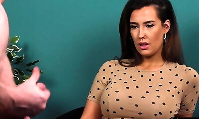 Skilled sandy-haired bitch Syren De Mer pleases her shy dude in glasses with solid BJ