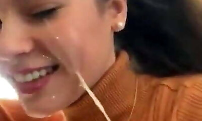 Latina stepsister teenie gets face jizzed