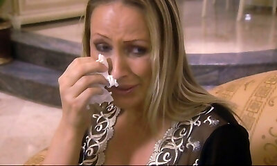 Mature plastic blonde Rebecca More gets a harsh fuck in the kitchen