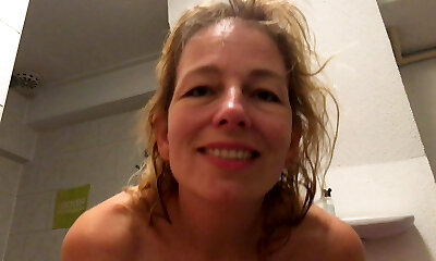 Amateur wife washes her hairy pussy. Wooly cunt wife, big ass, big tits.