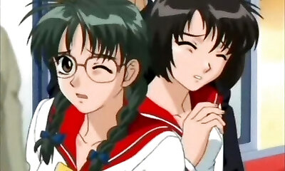 Cute anime coed fumbles her hard nipples and gets fucked