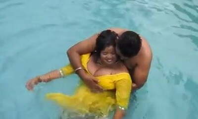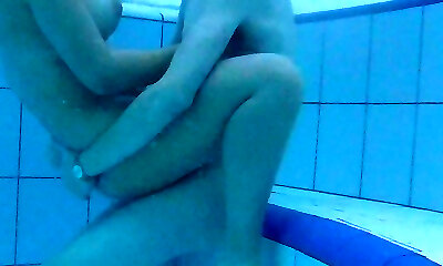 Nudist couple fucks in public pool and the voyeur is observing them while the hidden cam is recording!