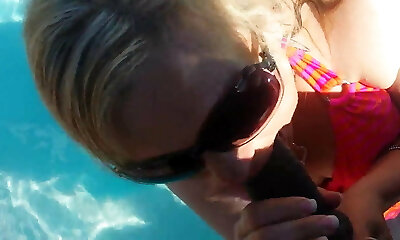 Blond Amateur Granny Beta Sucks Fat Cock By The Pool