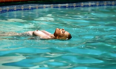 Horny man eats platinum-blonde hottie in the pool while practicing