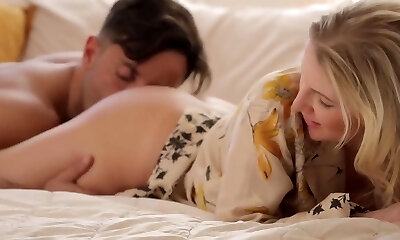 Romantic blonde babe, Bella Rose is getting boned instead of getting prepared for work and loving it