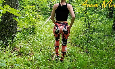 Fit Latina saddles her trainer's pipe while during outdoor training