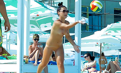 Volleyball with magnificent nude beach girl caught on a hidden camera