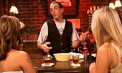 2 dirty-minded babes using the strap-on fucktoy at the local bar